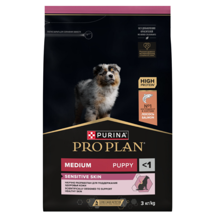 Изучая потребности щенков на протяжении многих лет, команда квалифицированных ветеринарных специалистов и диетологов PURINA разработала сухой корм PRO PLAN® SENSITIVE SKIN (для чувствительной кожи) — ежедневный рацион с высоким содержанием лосося для щенков средних пород. Этот полнорационный корм сбалансирован по составу и помогает поддерживать здоровье чувствительной кожи.